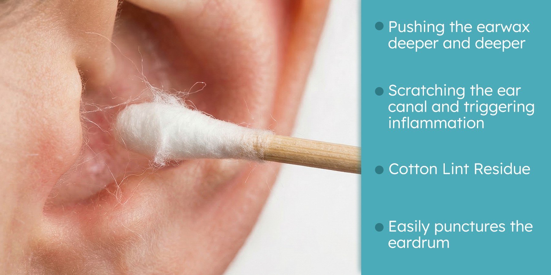 Health experts — including guidance referenced by the American Academy of Otolaryngology–Head and Neck Surgery — warn that inserting cotton swabs deep into the ear canal can push earwax further inside rather than removing it.