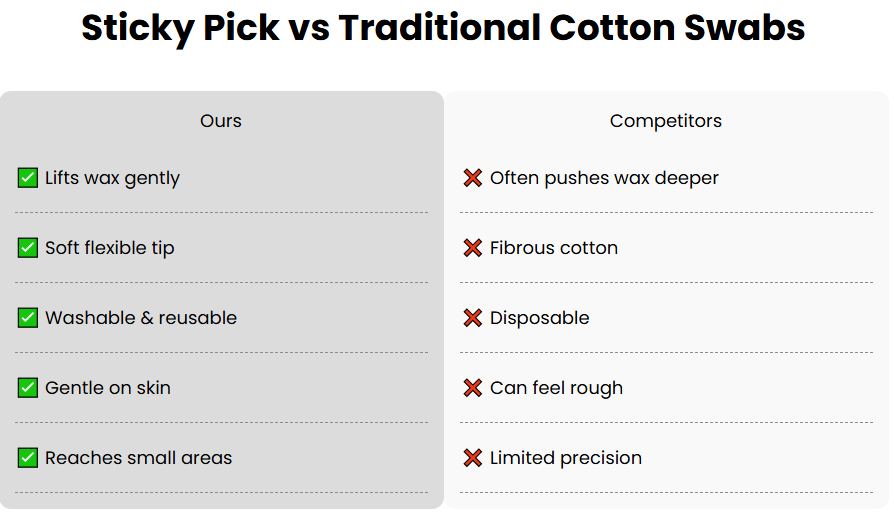 One reason these tools have become popular is their gentle material and simple design. Unlike traditional swabs, Sticky Pick ear cleaners typically feature: